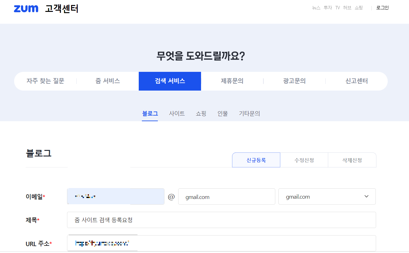 2023년 zum 사이트 검색등록하는 방법이 개편되었습니다.