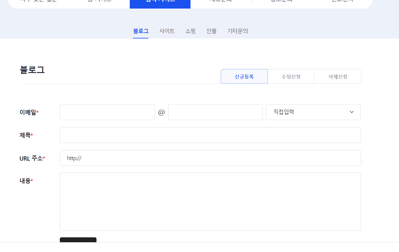 사이트 등록 홈페이지 > 검색서비스 칸에서 블로그와 사이트로 나뉘어져 있을겁니다.