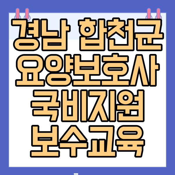 경남 합천군에서 요양보호사 자격증을 취득하고자 하는 분들에게 국비지원 제도는 자격증 취득에 필요한 교육비를 지원하는 좋은 기회입니다. 특히 합천군에서는 다양한 교육기관이 이를 지원하고 있어 자격증 취득 준비가 용이합니다.
