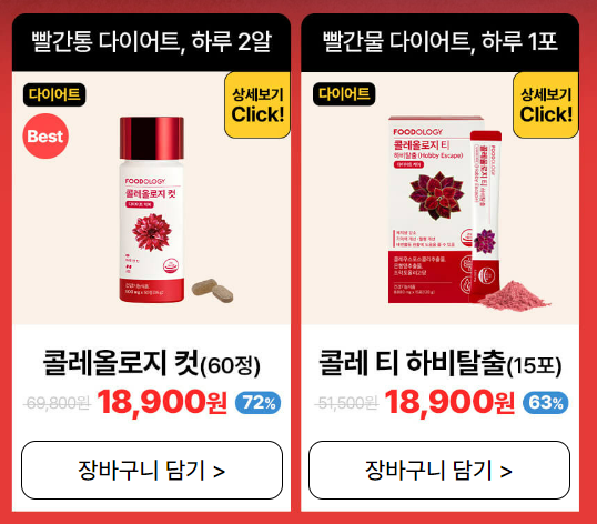 ✅ 콜레올로지컷 60정: 69,800원 → 18,900원(72% 할인)