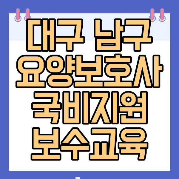 대구 남구에서 요양보호사 자격증을 취득하고자 하시는 분들을 위해 국비지원 신청 방법과 내일배움카드 발급 방법, 보수교육 신청 정보를 제공합니다. 경제적 부담을 줄이며 요양보호사 자격을 갖추는 방법을 알아보세요.