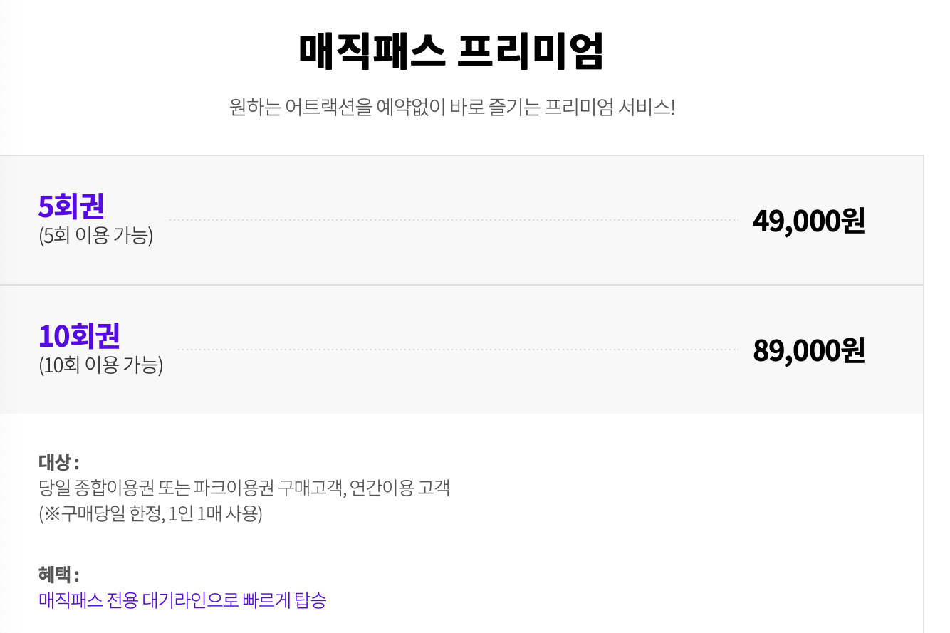 매직패스 가격 및 할인받기