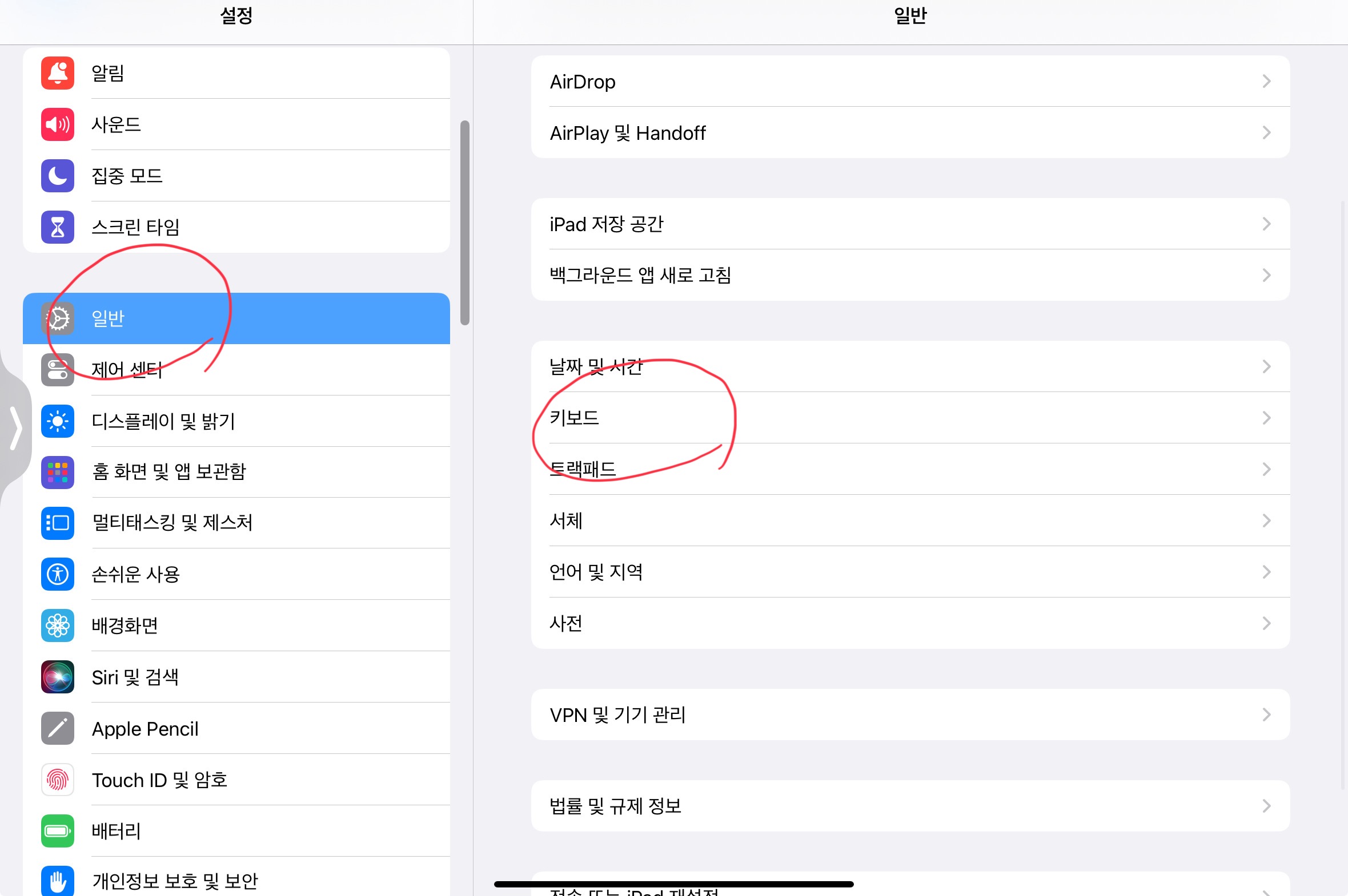 안 되어있다면 아이패드에서 키보드를 이용해 몇 번 타이핑 해보세요.