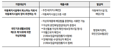 | 배우자 주민등록표등본 | <해당자만 제출> 배우자가 신청자의 주소와 분리된 경우 배우자 주민등록표등본 |