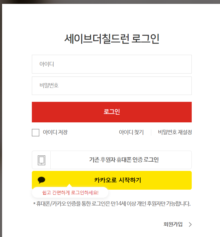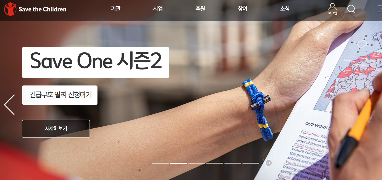 먼저 세이브 더 칠드런 홈페이지로 이동해줍니다. 화면 우측 상단에 로그인 버튼을 눌러주세요.