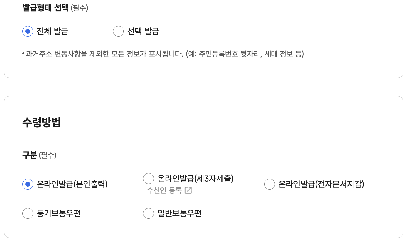 | 주민등록등본 | 주민등록증 | 기타 신분증 발급 기관 |