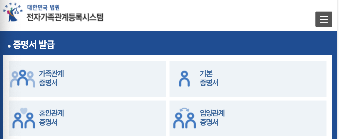 기본증명서 및 가족관계증명서 또는 대법원전자가족관계등록시스템에서 온라인 무료발급이 가능합니다.