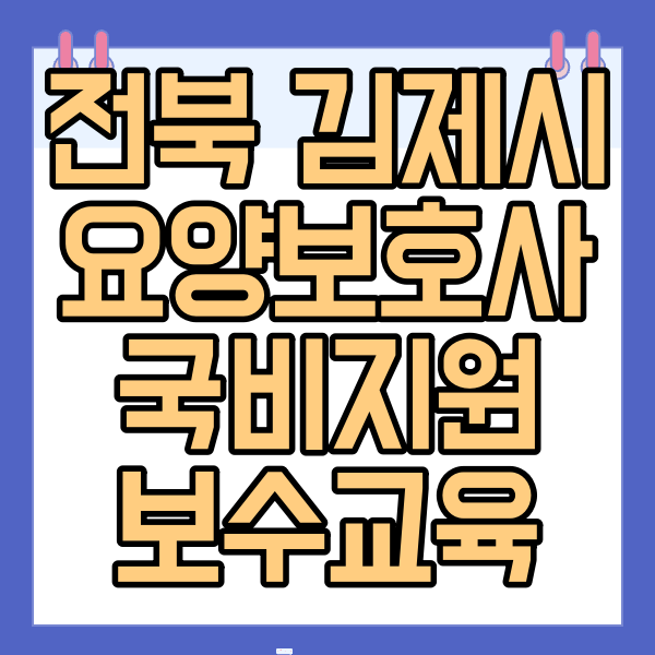 전북 김제시에서 요양보호사 자격증 취득과 국비지원, 내일배움카드, 보수교육 관련 정보를 안내해드렸습니다. 꾸준한 교육을 통해 자격을 유지하고 전문성을 키워보세요!