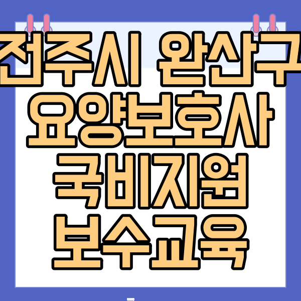 전주시 완산구에서 요양보호사 자격증을 취득하려는 분들은 국비지원과 내일배움카드로 교육비 부담을 덜고, 보수교육을 통해 지속적인 직무 능력 향상을 도모할 수 있습니다. 정부 지원을 통해 안정적인 직업을 준비하고, 실습을 통해 현장 경험을 쌓을 수 있습니다. 세부 신청 절차는 HRD-Net 또는 해당 교육원에서 확인할 수 있습니다.