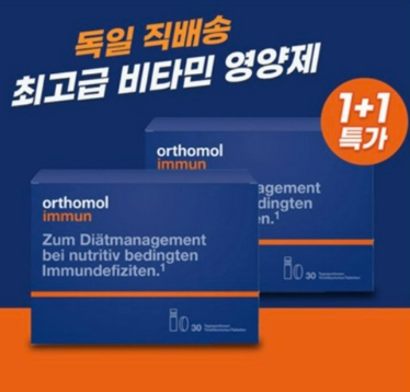 다음은 요새 30대들이 많이 복용하는 비타민, 비타민 계의 에르메스라고 불리는 오쏘몰 이뮨입니다. 이 비타민은 국내에서 구하면 비싼 가격탓에(?) 선물로 많이 주고받는데요. 독일직배송으로 최대한 저렴하게, 하지만 1+1 구성으로 선물하기는 참 좋은 구성으로 찾아보았습니다. 요새 사람들이 이 비타민을 많이 복용하는 걸 보고 저희 부모님도 이 비타민을 많이 궁금해하시더라구요. 저도 한 세트 선물하려고 주문했습니다.