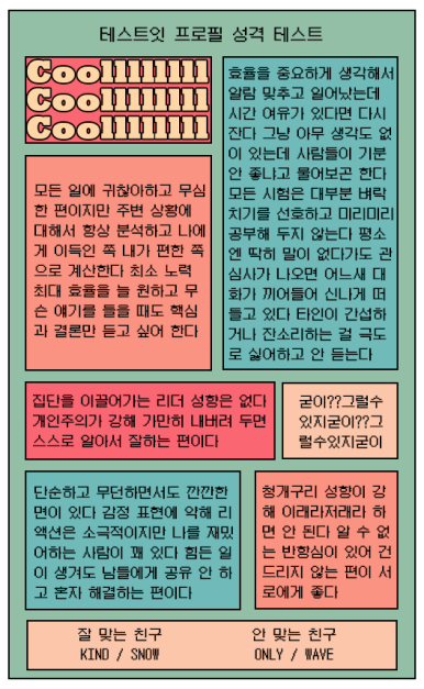 💖 잘 맞는 친구 WOOD,SOFT / 안 맞는 친구 COOL,EASY