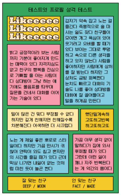 💖 잘 맞는 친구 DEEP,MOON / 안 맞는 친구 FACT,MADE