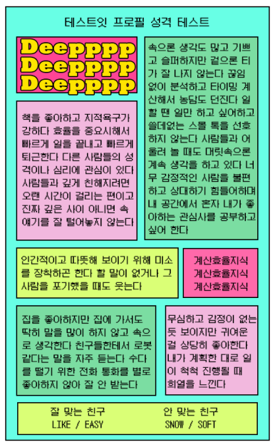 💖 잘 맞는 친구 FACT,COOL / 안 맞는 친구 DEEP,MINE