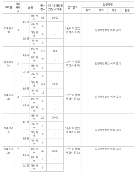💡 84A평형대(공급세대: 3세대) → 접수건수 241, 순위내 경쟁률 80.33:1