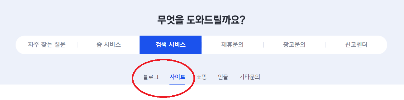 사이트 등록 홈페이지 > 검색서비스 칸에서 블로그와 사이트로 나뉘어져 있을겁니다.