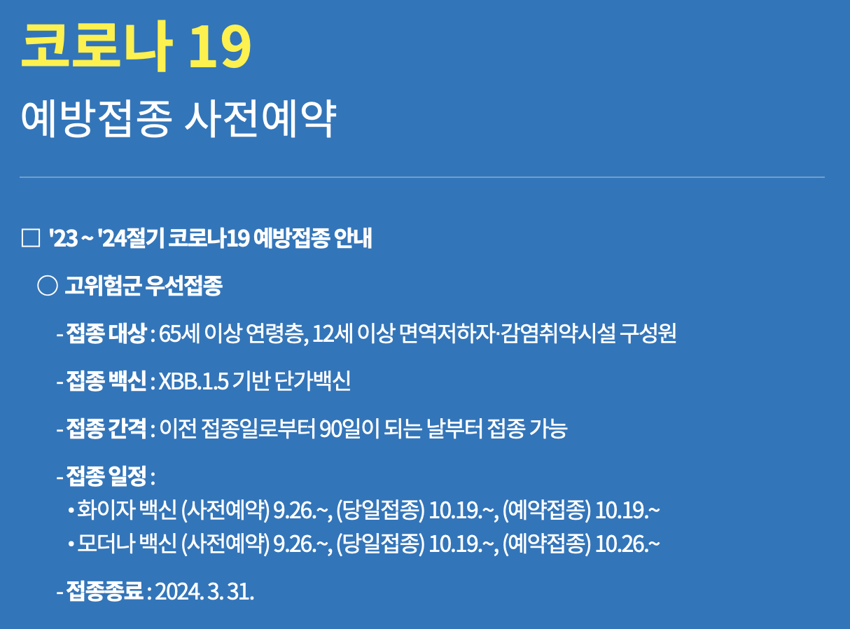 - '23 ~ '24절기 코로나19 예방접종 안내