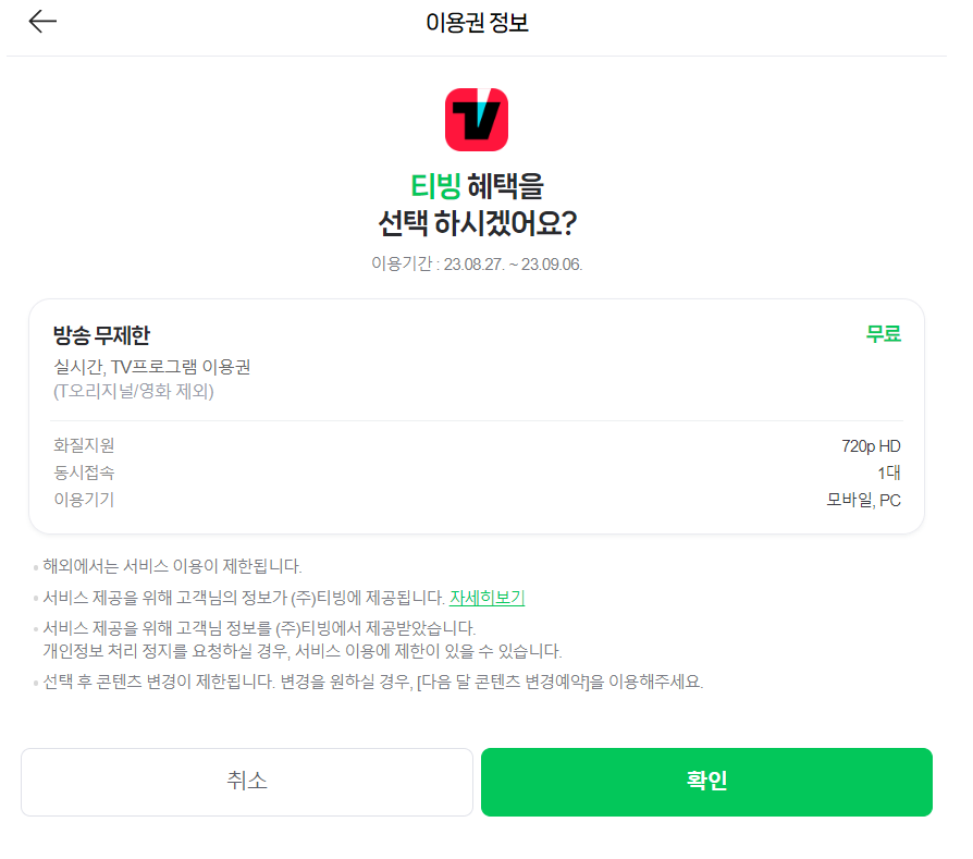 1.TVING 한달 무료 혜택 신청하기