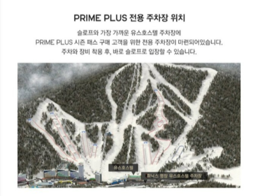 이번에 플러스 시즌권 고객들에게 제공되는 전용주차장도 마련되어 있다고 하는데요. 주차 후 장비 착용하고 바로 슬로프에 입장할 수 있다는 점이 정말 메리트 있어보입니다. 작년보다는 시즌권 가격이 살짝 올라 마음이 아프지만, 1년에 몇번 즐길 수 없는 시즌이기에 여러 곳을 비교해보고 결정해보아야겠습니다.