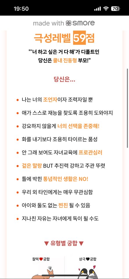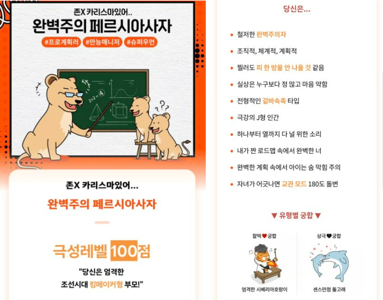 오늘은 재미로 보는 K부모테스트에 대해서 알아보고 결과까지 확인해보았습니다. 여러분들은 어떤 유형이었나요? 이런 테스트로라도 자신의 스타일을 확인해보는 재미가 쏠쏠한 요즘입니다. 테스트는 테스트일뿐, 재미로만 확인하시길 바라며 오늘 포스팅을 마치겠습니다.