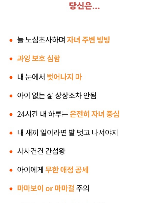 ✅ 늘 노심초사하며 자녀주변 빙빙. 과잉보호 심함