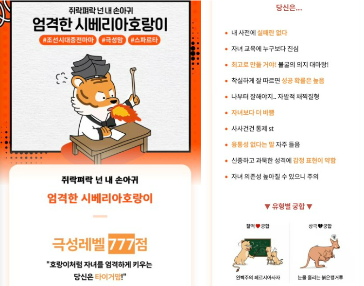 ✅ 호랑이처럼 자녀를 엄격하게 키우는 당신은 타이거맘!